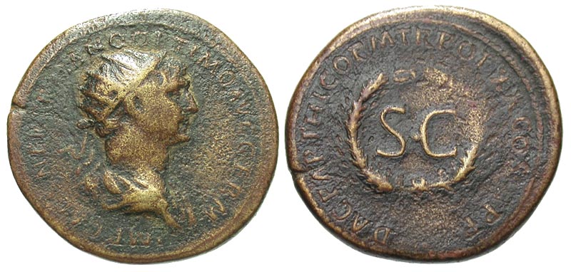 Lot 15-143. Trajan. A.D. 98-117. Æ dupondius. Rome mint, for use in Syria, A.D. 116.