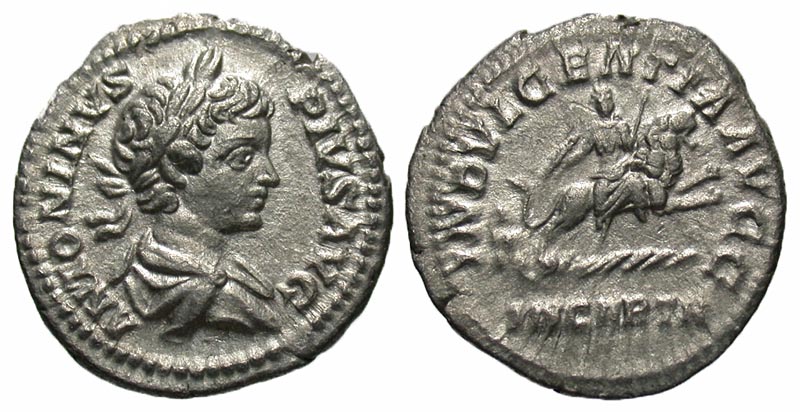 Lot 15-180. Caracalla. A.D. 198-217. AR denarius. Rome mint, A.D. 203.