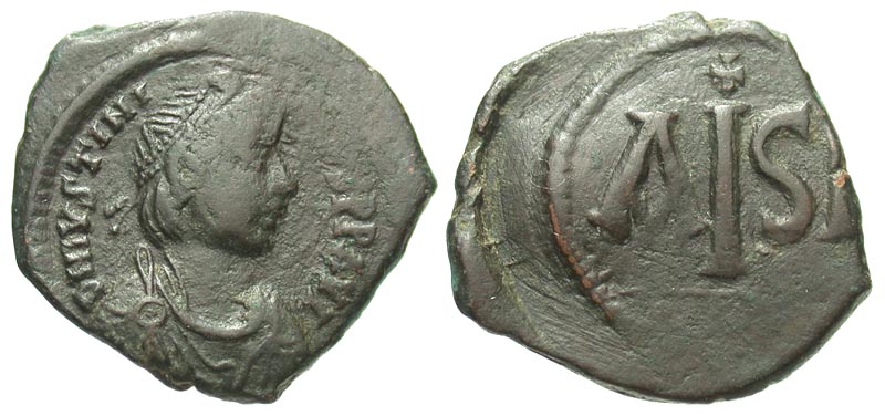 Lot 15-254. Justinian I. 527-565. Æ 16 nummi. Thessalonica mint, 527-562.