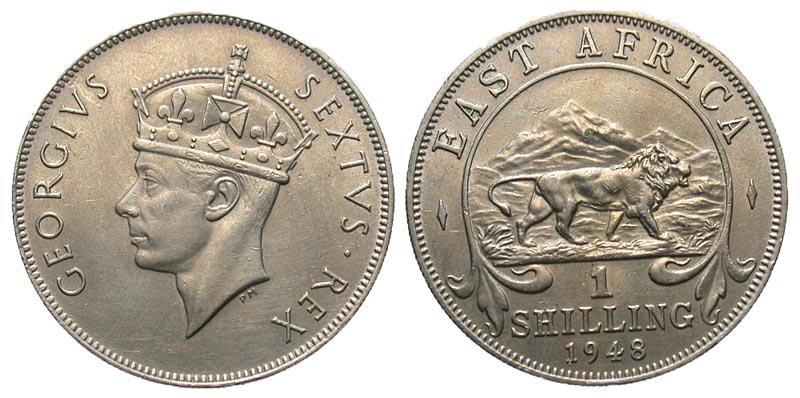 Lot 15-283. East Africa. George IV. 1936-1952. AR 1 shilling. 1948.
