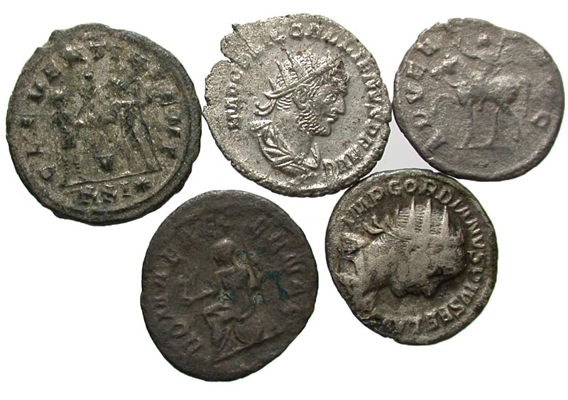 Lot of 5 AR Antoninianii. Different emperors and types.