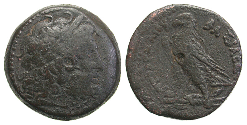 Ptolemaic Kingdom. Ptolemy II Philadelphos. 285-246 B.C. Æ diobol (30.4 mm, 21.53 g, 11 h). Alexandria, 260-246 B.C. Head of Zeus-Ammon right, wearing tainia / ΠTOΛEMAIOY BAΣIΛEΩΣ, Eagle standing left on thunderbolt, T between legs. Svoronos 506; Noeske 75; SNG Cop 157. gVF, red patina.