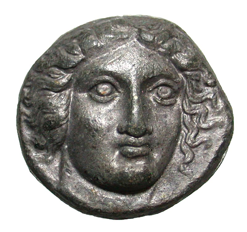 Islands off Caria, Rhodos. Rhodes. 408-404 B.C. PB tetradrachm (23.7 mm, 11.16 g). UNIFACE LEAD / ROSA OFF-METAL TRIAL STRIKE. Head of Helios facing slightly right / cf. BMC 11; CD-128va. EF.