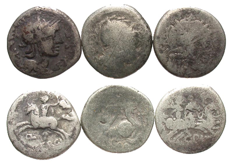 Lot of 3 Roman Republican Denarii. Different types and moneyers. Fair.