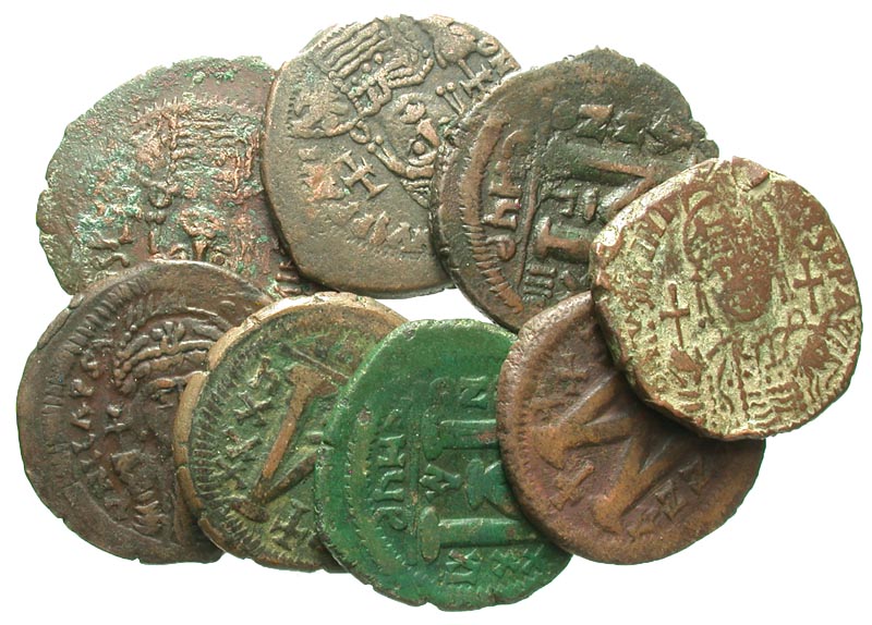 Lot 16-263. Lot of 8 Byzantine Folles, Justinian I.