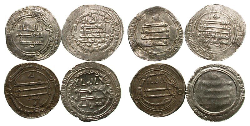 Lot of 4 Abbasid Dirhems. Different dates, rulers, and mints, F-VF.