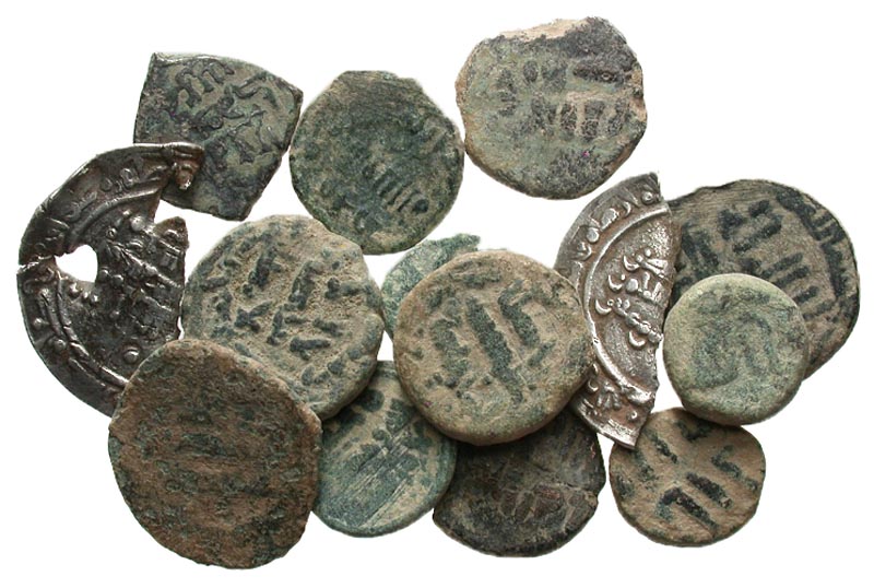 Lot of 14 Spainsh Islamic coins. Different types, low grade. Two cut silver dirhams.