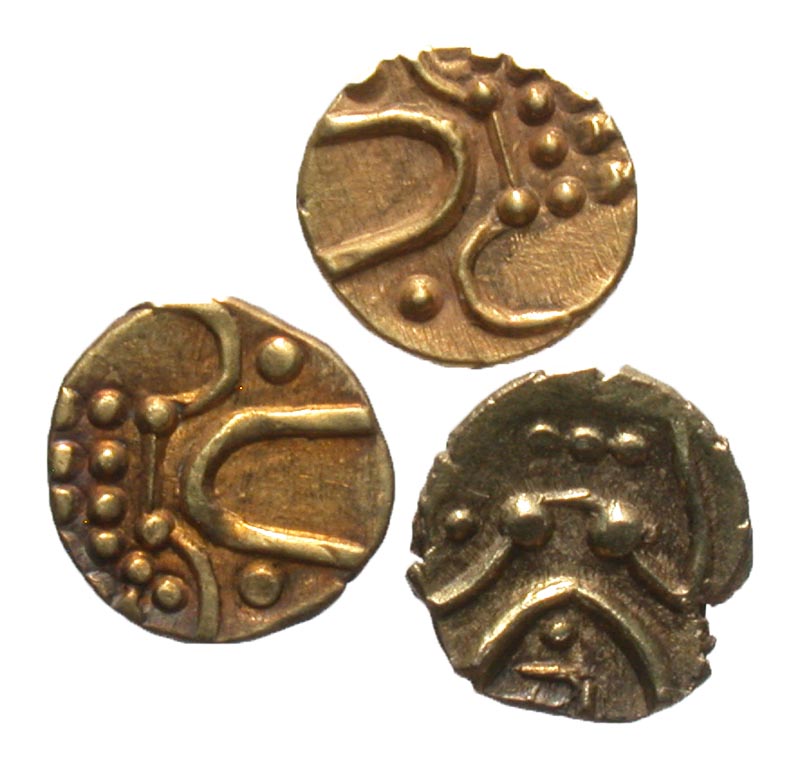 Lot of 3 Gold Fanams. Two different types, sharp strikes.