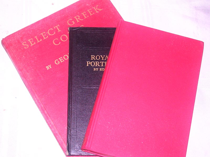 Lot of 3 Books on Classical Greek Coinage. Royal Greek Portrait Coins, Newell. 1937, 125 p.Select Greek Coins, Hill. 1927, 61 p. and 64 platesGuide to the Coins of the Ancient World, Head. 1968, 127 p. and 70 plates,Some water damage to the covers but does not effect the contents of the book.