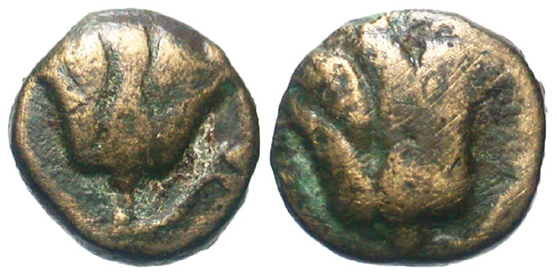 CARIA, Rhodes. 205-188 BC. AE10 (1.42 gm). Rose / Rose. SNG.Fin.604. Fine+, brown patina.