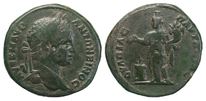 Thrace, Pautalia. Caracalla. A.D. 198-217. Æ 30 (30.0 mm, 15.22 g, 7 h). AVT K M AVP ANTΩNEINOC, laureate head right / OVAΠIAC ΠAVTAΛIAC, Homonoia standing left, holding patera over altar and cornucopia. Ruzicka 650 var (obverse legend); Varbanov 5144 var (same). VF.