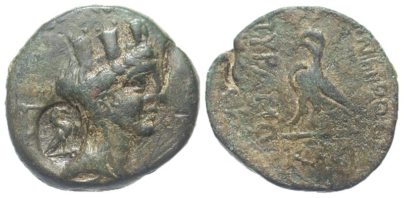 CILICIA, Hieropolis. II-I Century BC. AE21 (8.09 gm). Turreted head of Tyche, eagle c/m / Eagle standing on thunderbolt. SNG.BN.2221. VF, green patina. Ex Mark Bir collection.