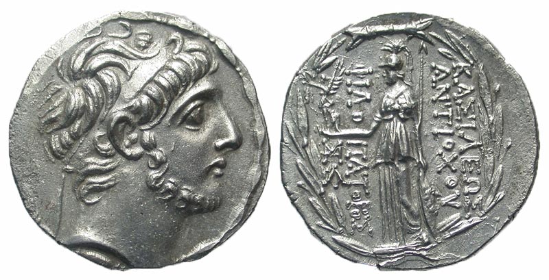 SELEUKID KINGDOM. Antiochos IX Philopator, 116-95 BC. AR Tetradrachm (16.34 gm) of Cilicia? Diademed bearded head / Athena standing with Nike, spear and shield. SC.2361. XF.
