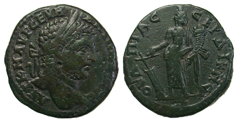 Thrace, Serdica. Caracalla. A.D. 198-217. Æ 31 (30.5 mm, 16.56 g, 1 h). AVT K M AVP CEVH ANTΩNEINOC, laureate head right / OVΛΠIAC CEPΔIKHC, Tyche standing facing, head right, holding rudder and cornucopia. Ruzicka 323; Varbanov 2473 var (Tyche's head left). VF.