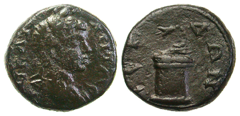 Thrace, Serdica. Caracalla. A.D. 198-217. Æ 17 (16.9 mm, 5.31 g, 7 h). AV K M ANTΩNI, laureate and draped bust right / CEPΔΩN, serpent arising from altar. Varbanov 2044; Hristova & Jekov 110.12.18. Fine, Scarce.