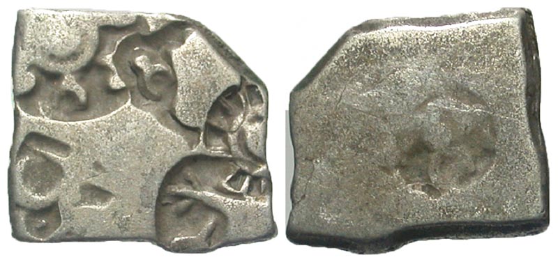 MAURYAN EMPIRE. Samprati, 216-207 BC. AR Karshapana (3.31 gm). Four punchmarks / One punchmark. M.4197. Toned aVF.