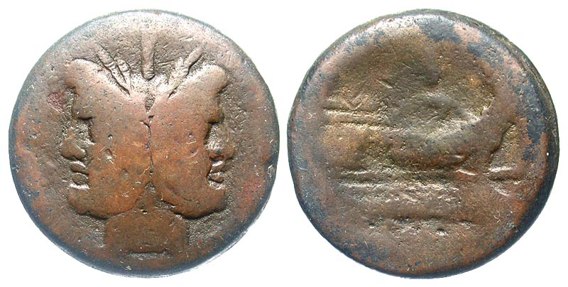 ROMAN REPUBLIC. After 211 BC. AE As (26.05 gm). Head of Janus / Prow. Wul.52. Cr.56/2. Fine smooth brown patina.