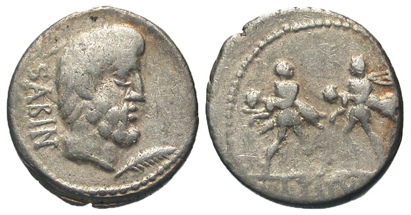 Lot 17-171. ROMAN REPUBLIC. L. Titurius L.f. Sabinus, 89 BC. AR Denarius