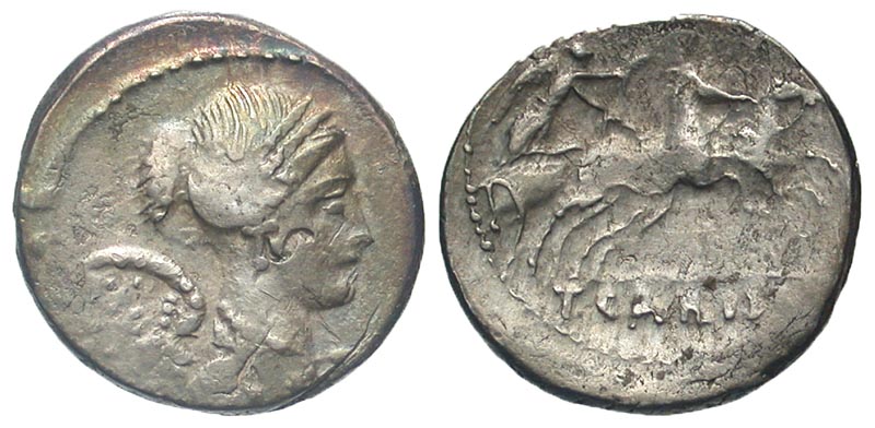 Lot 17-177. ROMAN REPUBLIC. T. Carisius, 46 BC. AR Denarius