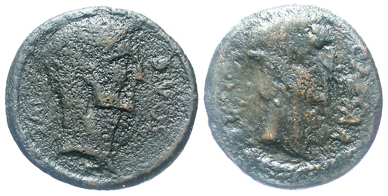 OCTAVIAN AUGUSTUS and DIVUS JULIUS, 27 BC-14 AD. AE Dupondius (20.80 gm) of 38 BC. Bare head of Augustus / Laureate head of Caesar. Cr.535/1. Fine, brown black patina. Rare.