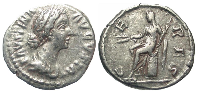 Lot 17-211. FAUSTINA JUNIOR, wife of M. Aurelius, d. 175 AD. AR Denarius