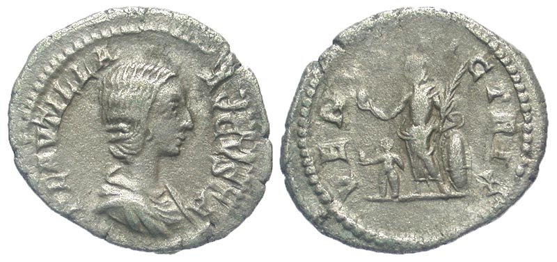 Lot 17-224. PLAUTILLA, wife of Caracalla, died 212 AD. AR Denarius. Scarce.