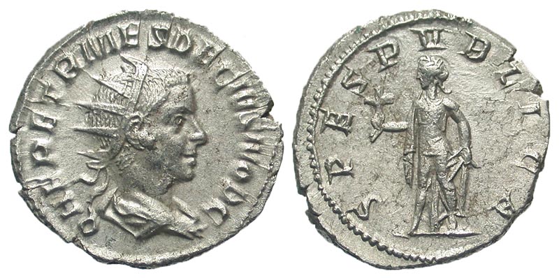 Lot 17-239. HERENNIUS ETRUSCUS, 251 AD. AR Antoninianus. Scarce.