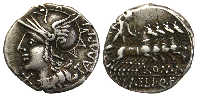 Lot 2-129. M. Baebius Q.f. Tampilus. 137 B.C. AR denarius. Rome.
