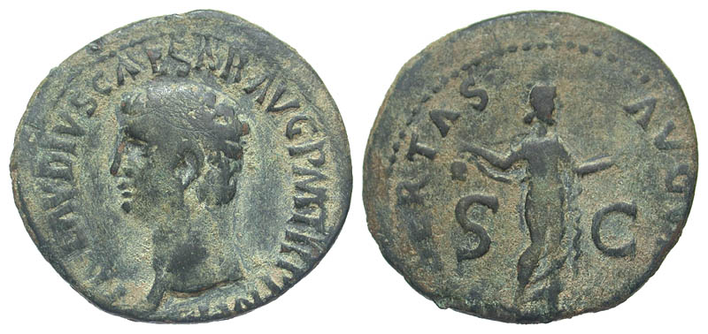 Lot 18-093. Claudius. A.D. 41-54. Æ as. Rome mint, A.D. 41-50.