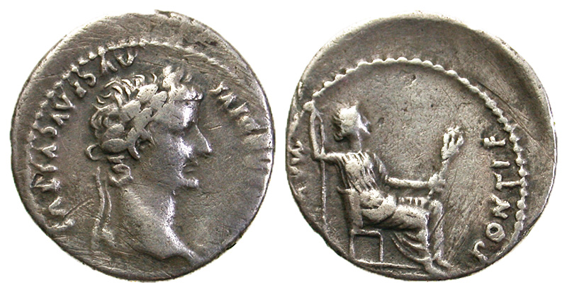 This coin is commonly called a "Tribute Penny." In the Gospel according to Matthew, Jesus, referring to a "penny" asked, "Whose is this image and superscription?" When told it was Caesar, He said, ''Render therefore unto Caesar the things which are Caesar's and unto God the things that are God's" (22:20-21). Since Tiberius was Caesar at the time, this denarius type is attributed by scholars as the "penny" referred to in the Bible.