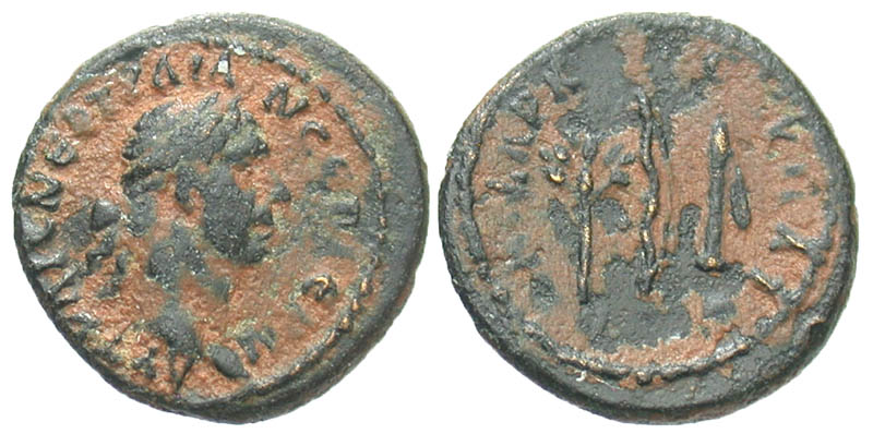 Trajan. A.D. 98-117. Æ quadrans (14 mm, 1.66 g, 6 h). Rome mint, A.D. 98-99. Laureate head right / Laurel branch, bow and quiver. BMC 110; McAlee 503; Sydenham 231. aVF, Scarce.