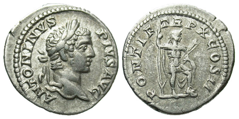 Lot 20-085. Caracalla. A.D. 198-217. AR denarius. Rome mint, A.D. 207.