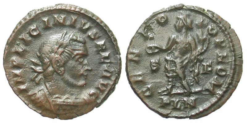 Licinius I. A.D. 308-324. Æ Follis (20.6 mm, 3.25 g, 6 h). London mint, struck A.D. 313-314. Scarce. IMP LICINIVS PF AVG, laureate and cuirassed bust right / GENIO POP ROM, S-F, PLN in exergue, Genius standing left, holding patera and cornucopia. RIC 3. VF, brown patina.