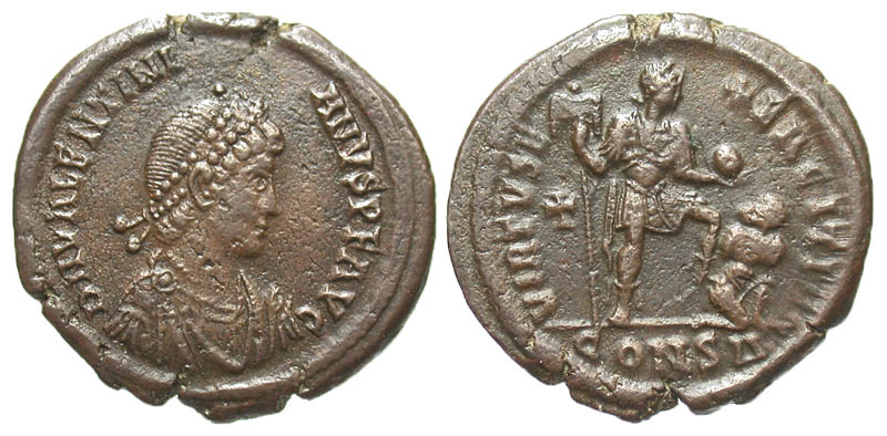 Lot 20-134. Valentinian II. A.D. 375-392. Æ 2. Constantinople mint, struck A.D. 383-388.