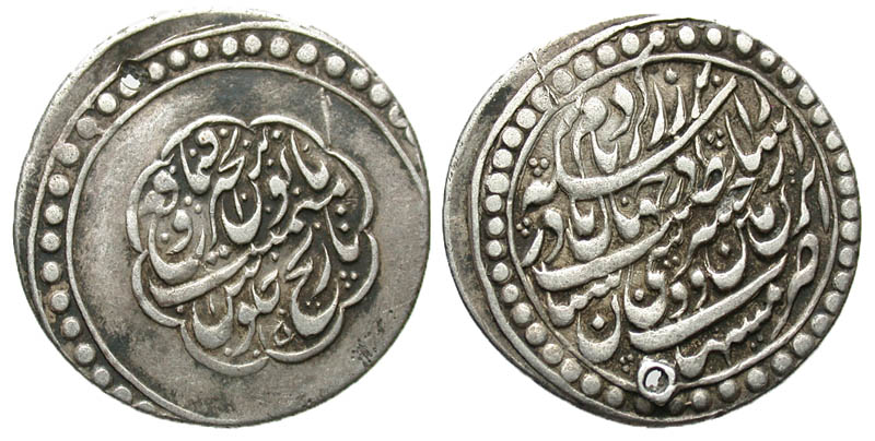 Lot 20-149. Afsharid. Nadir Shah, as king. 1148-1160/1735-1747. AR abbasi. Type B (julus type). Mashhad mint, 1148 A.H. in abjad chronogram. Scarce.