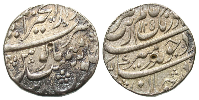 Lot 20-177. INDIA, Mughal Empire. Aurangzeb Almagir. 1068-1111 / 1658-1707. AR rupee. Ajmir mint, A.H. 1105, RY 38.