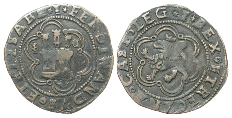 Lot 20-187. Spain, Castile & León. Fernando V & Isabel I (Los Reyes Catolicos). 1474-1504. Æ octavo. Cuenca mint.