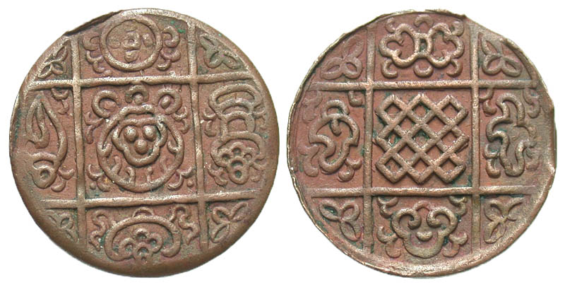 Lot 20-219. Bhutan. Ugyen Wangchuk. 1907-1926. Æ rupee. Scarce.