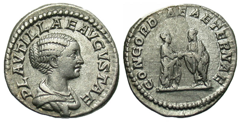 Lot 21-101. Plautilla, wife of Caracalla. AD 202-205. AR denarius. Rome mint, Struck A.D. 203.
