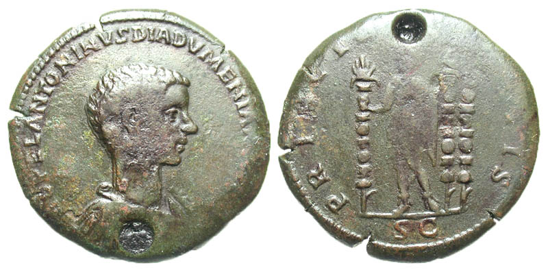 Lot 21-102. Diadumenian. As Caesar, A.D. 217-218. Æ sestertius. Rome mint. Rare.