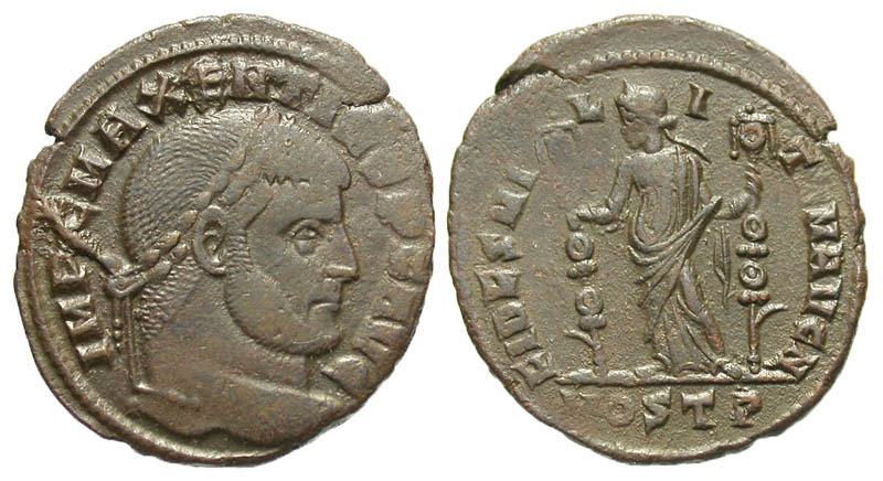 Lot 21-122. Maxentius. A.D. 306-312. Æ Follis. Ostia mint, Struck A.D. 309-312.