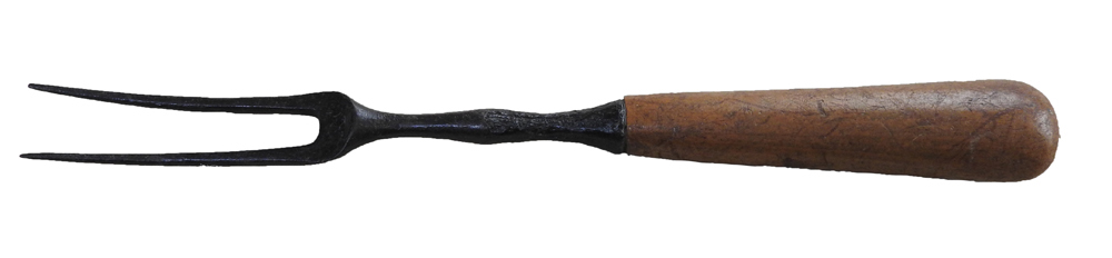 Iron Fork. English, XVII Century AD. 8 1/2? long with two tines, bone handle. Intact, including handle. Outstanding for these earliest forks.