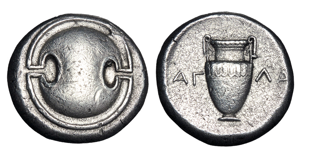 BOEOTIA, Thebes. 395-338 BC. AR Stater (12.06 gm). AGLA. Boeotian shield / Amphora with fluted decoration. BCD.556 . SNG.Cop.314. aXF.
