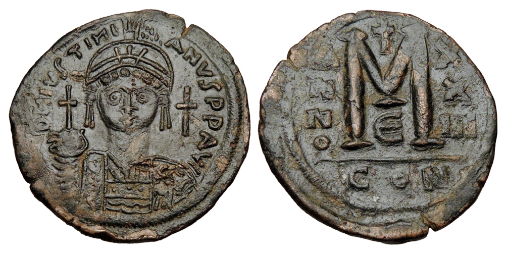 Lot 491. BYZANTINE EMPIRE. Justinian I, 527-565 AD. AE Follis