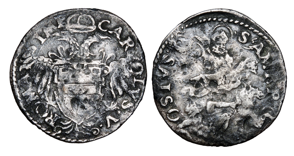 Lot 574. ITALY, Milan. Carlo V dAsburgo, 1535-1556 AD. AR Mezzo Bianco