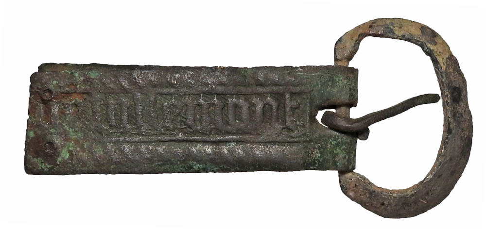 Lot 700. Bronze Buckle and Plate. English, XIV-XV Century AD. Inscription "ie villemont"