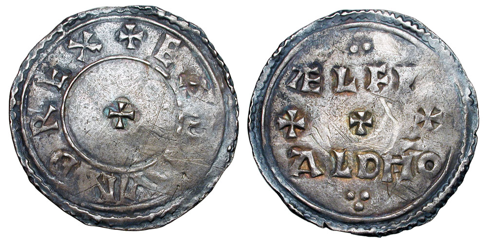 ENGLAND. Eadmund, 939-946 AD. AR Penny (1.45 gm) by Aelwald. Small cross / Legend. S.1105. Toned VF. Scarce.