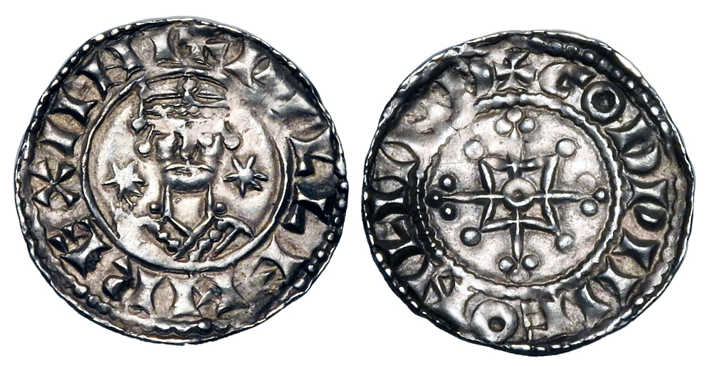 ENGLAND. William I the Conqueror, 1066-1087 AD. AR Penny (1.43 gm), two stars type, of London, Godwine. GODPINE ON LVND. Crowned bust facing with a star at each side / Cross botonée over square with incurved sides. S.1254. N.845(S). Toned XF. Scarce.
