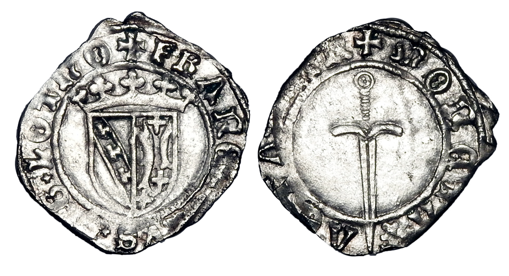 FRANCE, Lorraine. Francis I, 1544-1545 AD. AR Quarter-Plaque (1.23 gm) of Nancy. Crowned shield of arms / Sword. Rob.9441. Toned aXF. Ex Bir Collection. Scarce.