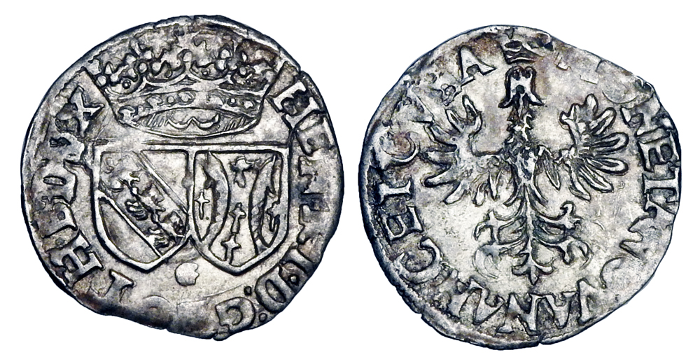 FRANCE, Lorraine. Henri II, 1608-1624 AD. Billon Gros (1.27 gm) of Nancy. Crowned shields of Lorraine and Bar / Crowned eagle. deS.XXV.9. Toned VF+.
